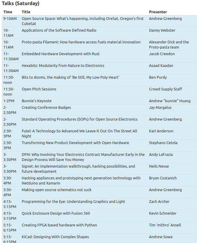 Schedule for Teardown hardware con in Portland
