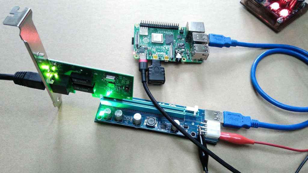 We should point out that once you modify a Raspberry Pi for PCI-Express access, you lose USB functionality. This loss is from removing the VL805 USB bridge chip. Ironically, one of the first external devices Kemble attached to his modified Pi was a VL805 based adapter. It is an excellent choice to make sure the link works since Raspbian has drivers for that chip.