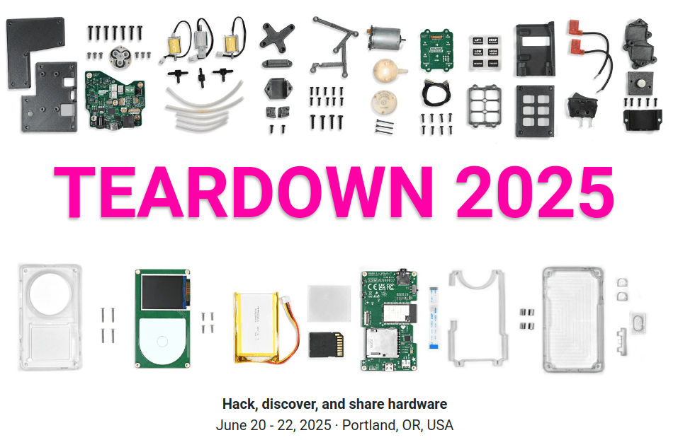 Teardown 2025 is a great opportunity to spread your ideas, show off your work, solicit feedback, enrich the hardware community, and foster collaborations. Previous events have featured amazing talks and workshops on a wide range of hardware topics — FPGAs, DIY AI, KiCad, firmware, BOMs, covert blinkenlights, the DMCA, security, RISC-V, prototyping, and so much more. Installations and demonstrations have included circuit sculptures, modular synths, DIY satellite receivers, retro gaming computers, robotic arms, and electronic jewelry.