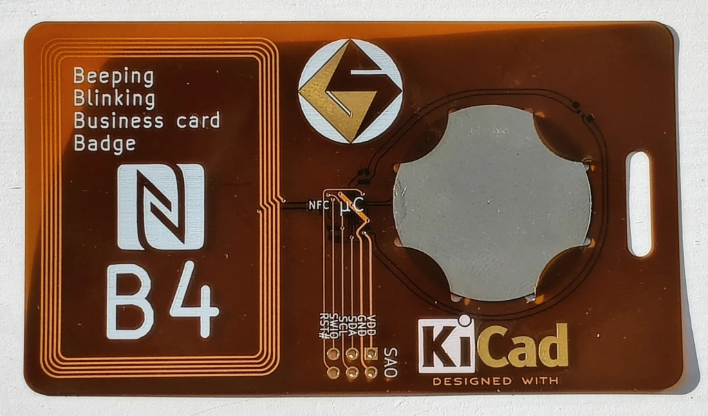 This 1mm thick, environmentally friendly, re-usable business card delivers a vcard with a tap and actively indicates the access with audio and visual cues. Everything is powered from the energy harvested through NFC so there are no batteries to replace. The card provides a URL to a vcard. This is a great project for OSHPARK’s Flex service.