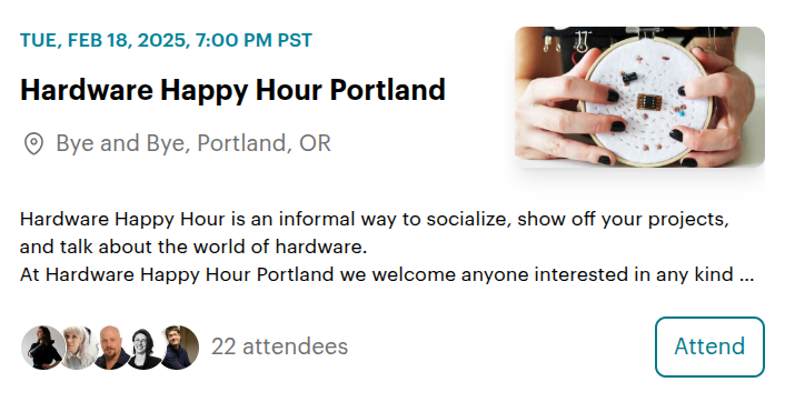 Don’t live in the Portland area? There are Hardware Happy Hours in other cities, too: