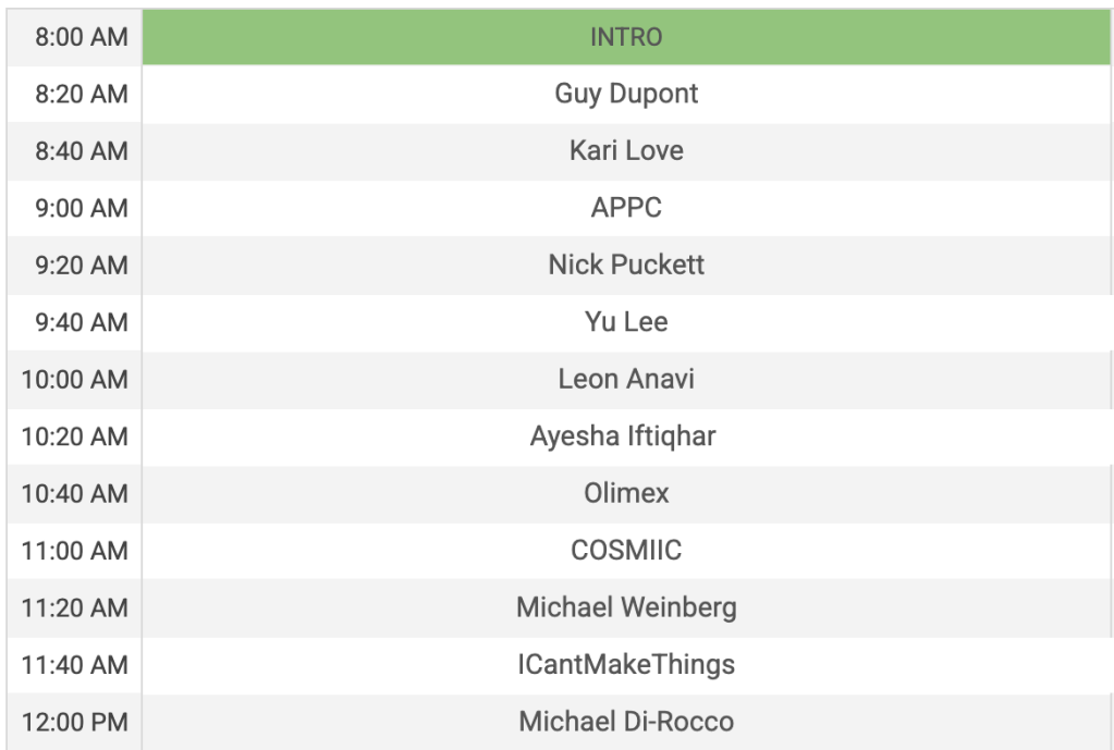Join OSHWA for 12 full hours of exciting and fascinating open source hardware with creators from all over joining us to show off their work!